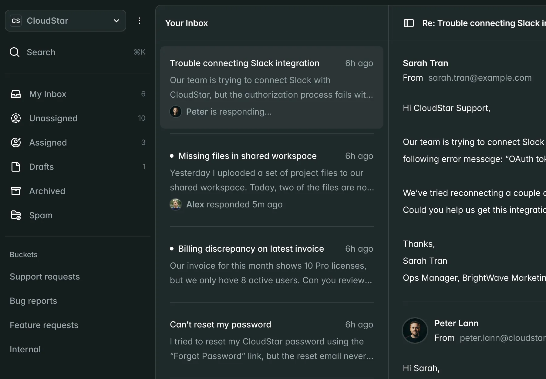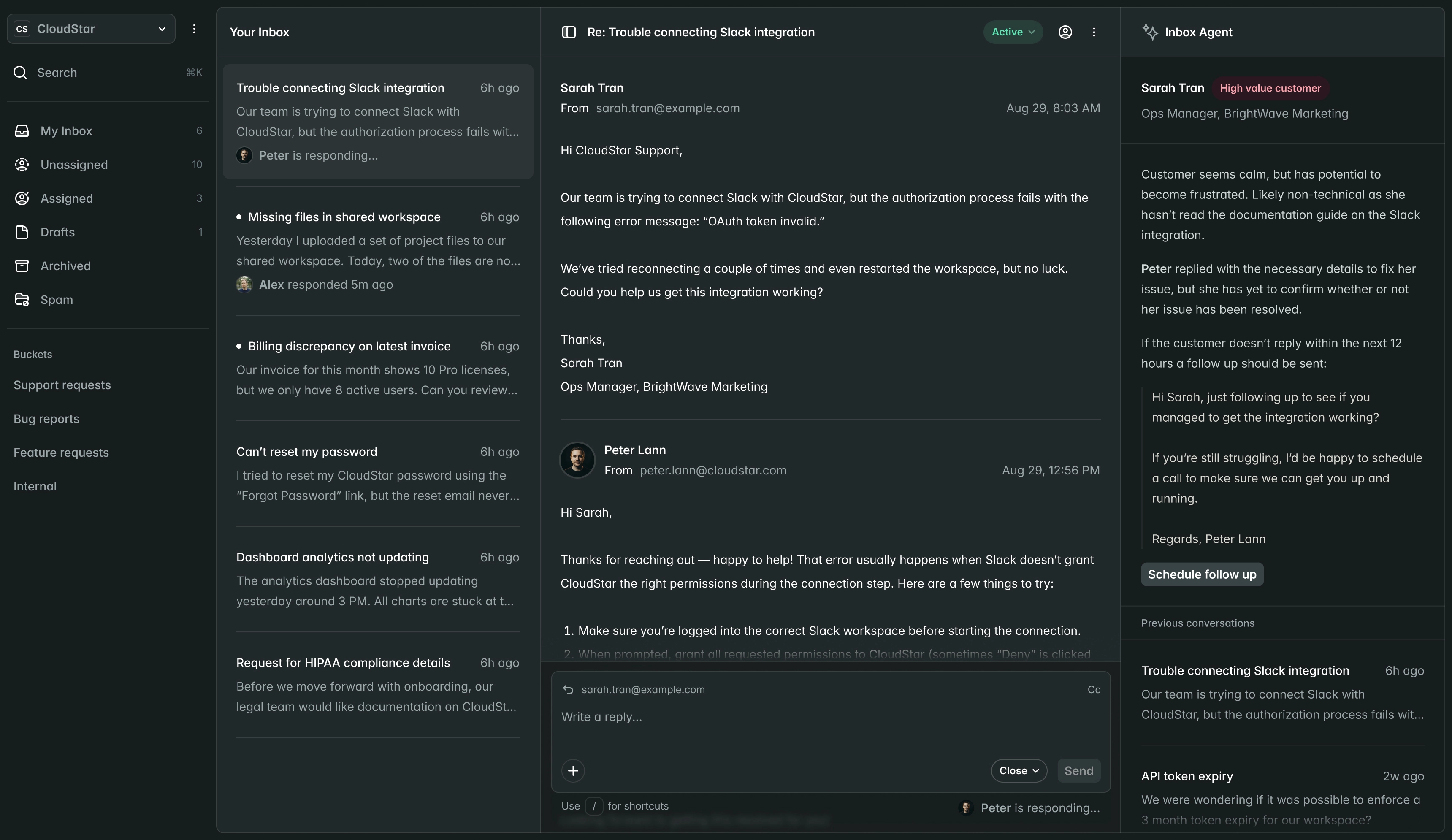 AI when it can. Humans when it should. Everything stays in one inbox.